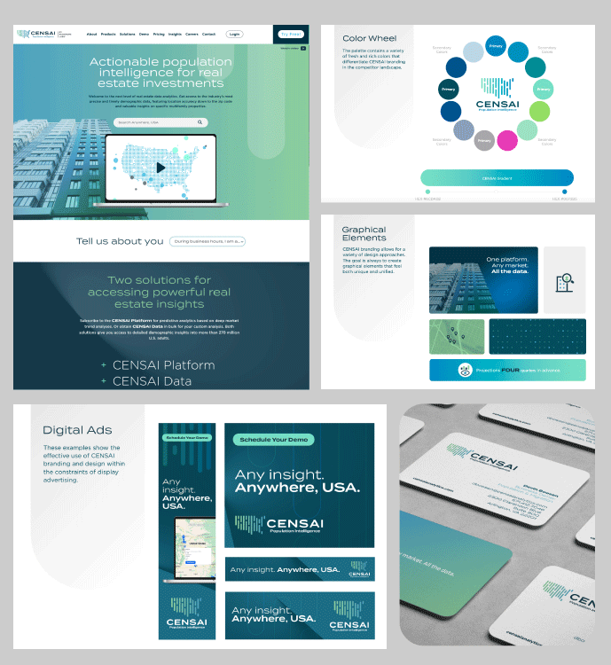Solution: I led the creation of the CENSAI brand from scratch—starting with naming, positioning, and visual identity. I directed the development of a clear brand narrative that humanized the data and communicated its real-world impact. Working closely with external agency, dev, product, and executive stakeholders, I oversaw the design and launch of CensaiAnalytics.com, created foundational assets including pitch decks, and help build brand guidelines to support future growth and consistency across all channels.